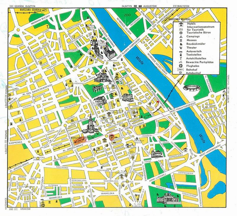 西ベルリン、Zoo駅(動物園駅)からワルシャワ行きの列車、きっとこの列車はもっと東、モスクワあたりが最終目的地ではなかっただろうか、でワルシャワ中央駅へ早朝着いた。Zoo駅の窓口でワルシャワ行き列車の場所を聞いたとき、職員の態度がかなりぶっきら棒だった。後からわかったが、西ベルリンのZoo駅はどうやら東ドイツの運営だということだった、これで納得。