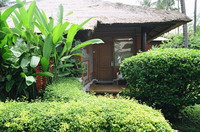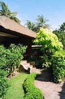 ジョクジャカルタに赴任している友人がすべてアレンジしてくれた。下の写真は宿泊したコテージ、別棟には中層のホテルもあった。隣のコテージには日本人女性二人組だったので丁度よいではないかと声をかけてみたが、何者か?というリアクションでそれまで。庭園はきれいに手入れされて気持ちがよかった。