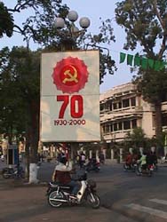 丁度この年は、ベトナム共産党創立70周年にあたり、街の中には垂れ幕があちこちに掲げられた。 ホアンキエム湖周辺(Feb03,2000) |