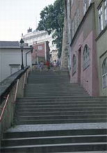 以前カフカの作品を読んだことがあり、カフカが執筆活動をしていた住居を訪ねた。それはプラハ城の横にある”黄金の小路”という路地にあり小さな家が建ち並んでいる一角だった。壁にカフカのレリーフを見つけ写真を撮ったが建物は足場が組まれ工事中であった。