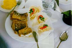 ドナウ川岸にあるレストランで、カマスのフライ |