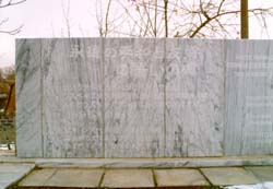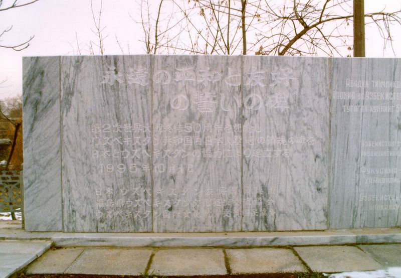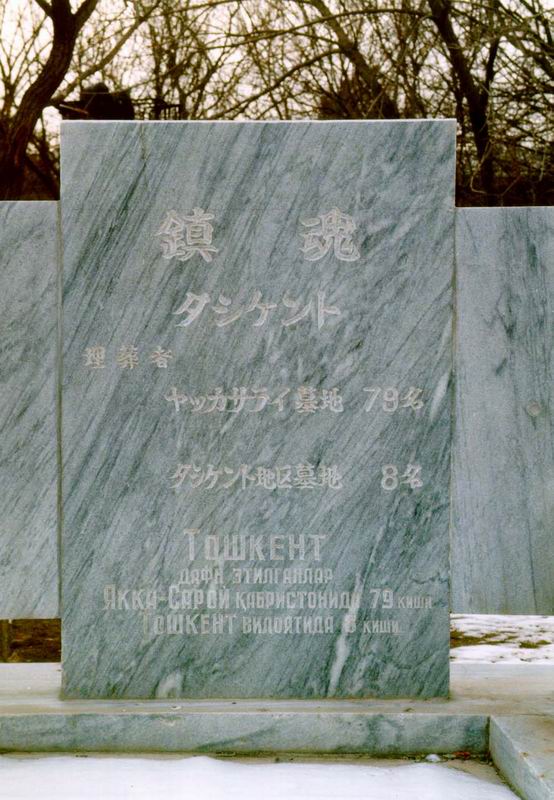 同行していた人が満州からの引揚者で、是非墓参りしたいということで訪ねた。ここには、ヤッカサライ墓地より79名、タシケント地区墓地より8名、計87名の日本人が眠る。碑には1990年5月23日、もうひとつに碑には1995年10月1日の日付が刻まれている。両方とも福島県という文字が読める。福島県出身者が多かったのだろうか。
