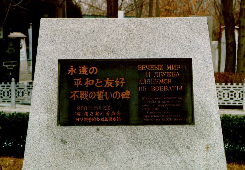 永遠の平和と友好 不戦の誓いの碑 1990年5月23日 日ソ親善協会福島県支部 |