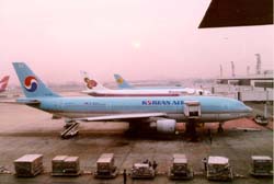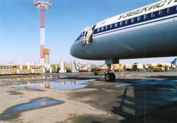 早朝のバンコック、ドンムアン空港 一番奥がウズベク航空機 朝霧の中のA300ウズベキスタン航空機(写真の質が悪いので差し替え予定)