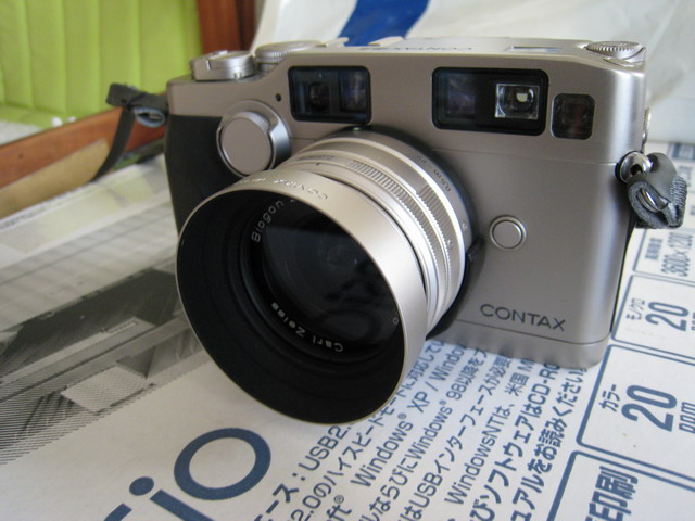Contax G2カールツアィスのPlannerとBiogonの切れを試したくなり、G1にしようかG2にしようか調べてみると、G1のAFはややもたつくというコメントを多く見かけた。よってG2だろうか。中古なら値段もこなれてきた。G2本体が40K-50K、Planner45/2は14K、Biogon28/2は20K程度だ。 このギャラリーthe Contax GPagesにある作品をみると益々、G2を手にしたくなった。 その後、中野のフジヤカメラで28mmと45mmとともに購入した(Jan.28, 2005)。 2007年8月にトラブルがあった。なんとCarl Zeiss Biogon 28mmの前頭部が滑落!!! 最近は、希少価値なのか値が下がっていないか若しくは上がっているように感じる。G2を購入したフジヤカメラを時々覗くが、品数が少ない。(2007年9月) |