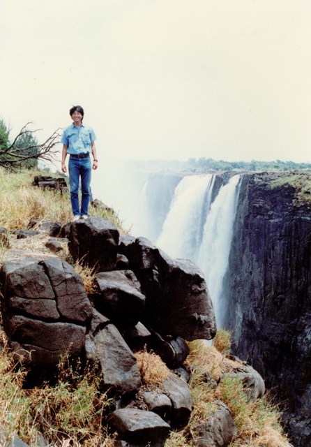 ルサカで生活していたときに何度かジンバブエ国境のリビングストンにあるビクトリアフォールズまで行った。そして、ジンバブエ側のビクトリアフォールズタウンへも行き、当時まだ独立して間もないジンバブエを楽しんだ。(ビクトリアフォールズのページ) デビルズ・カタラクト前(今は亡きMMと)1986年末