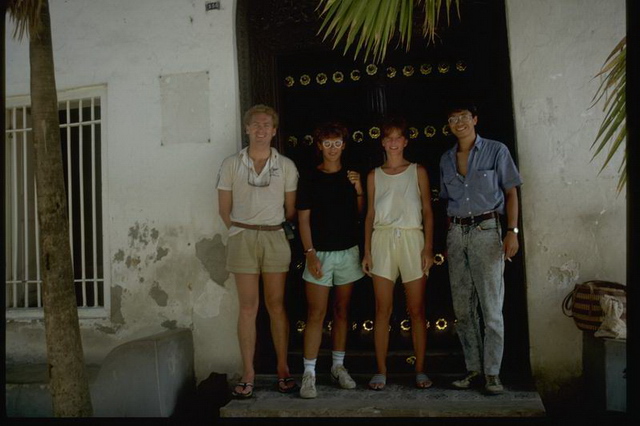 ザンジバルホテルの前で。(1988年3月) オーストラリア人とイタリア人カップル、そして私。