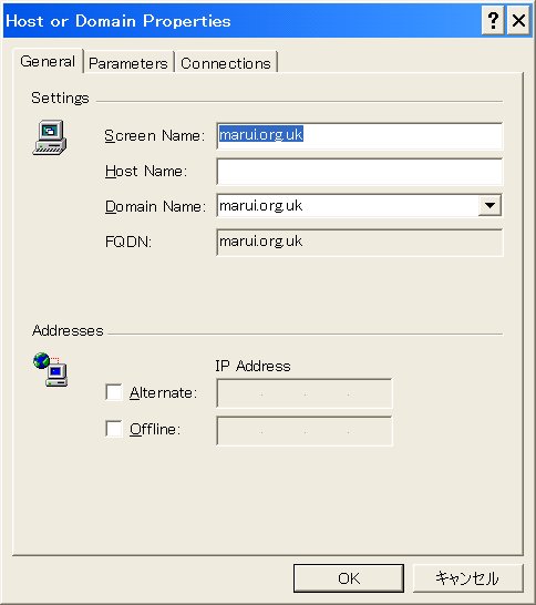 Host or Domain Properties Screen Name: 独自ドメインでも何でも認識しやすい名前 Host Name: ブランク Domain Name: 独自ドメインを入れる Hammernodeの設定の場合、Host Nameにサブドメインを入れていたが、ZoneEditはブランクでOK