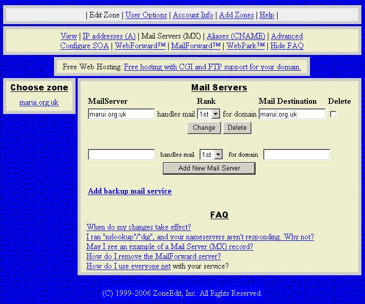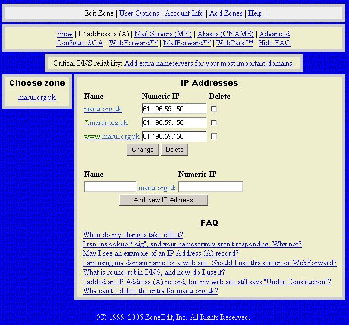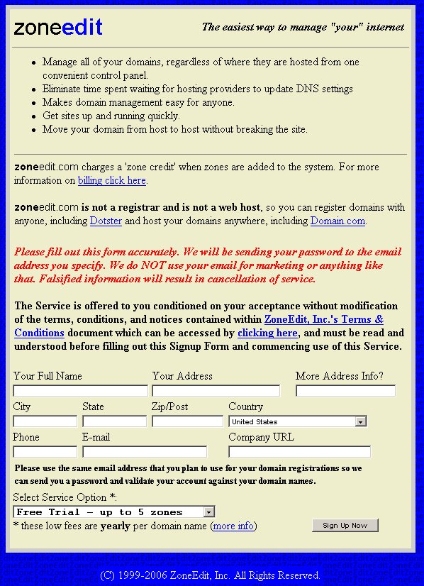 Hammernodeが2006年2月15日をもってサービスを停止したので、代替サービスを検索したところ、ZoneEditがサービスを提供していることを知り、アカウントを登録、サービス開始手続きをした。