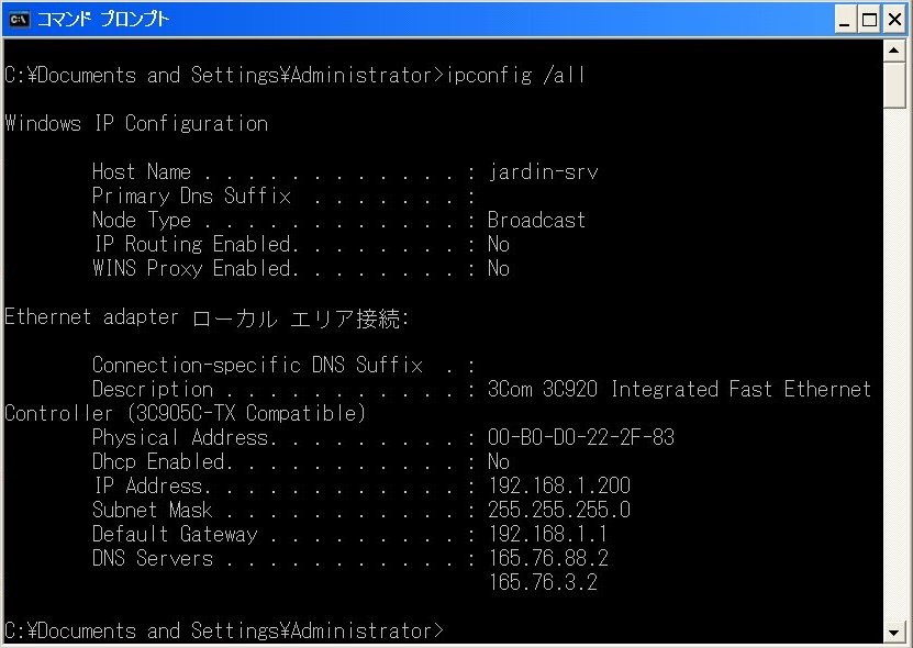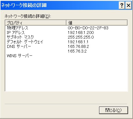 この設定にしたがって、Windows側のIPアドレスをサーバマシンに割り当てる。