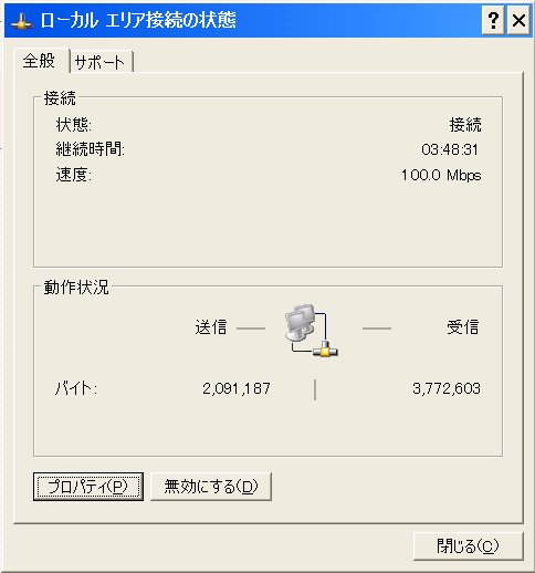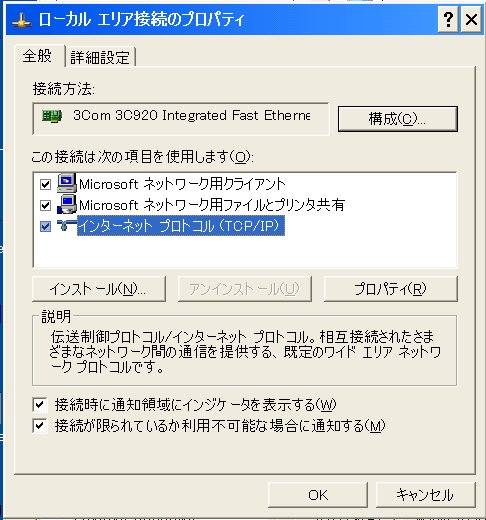 コントロールパネル、ローカルエリア接続、プロパティ