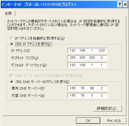 1.Winsdows側のTCP/IPの設定する