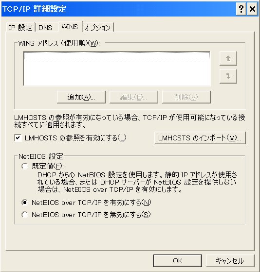Windows側でのTCP/IPの設定