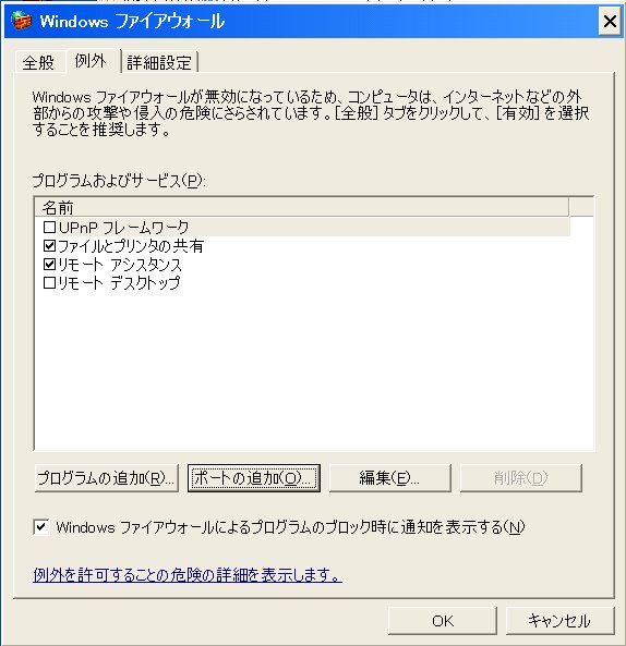 2.ファイヤーウオールの設定で、使用するポートを除外する